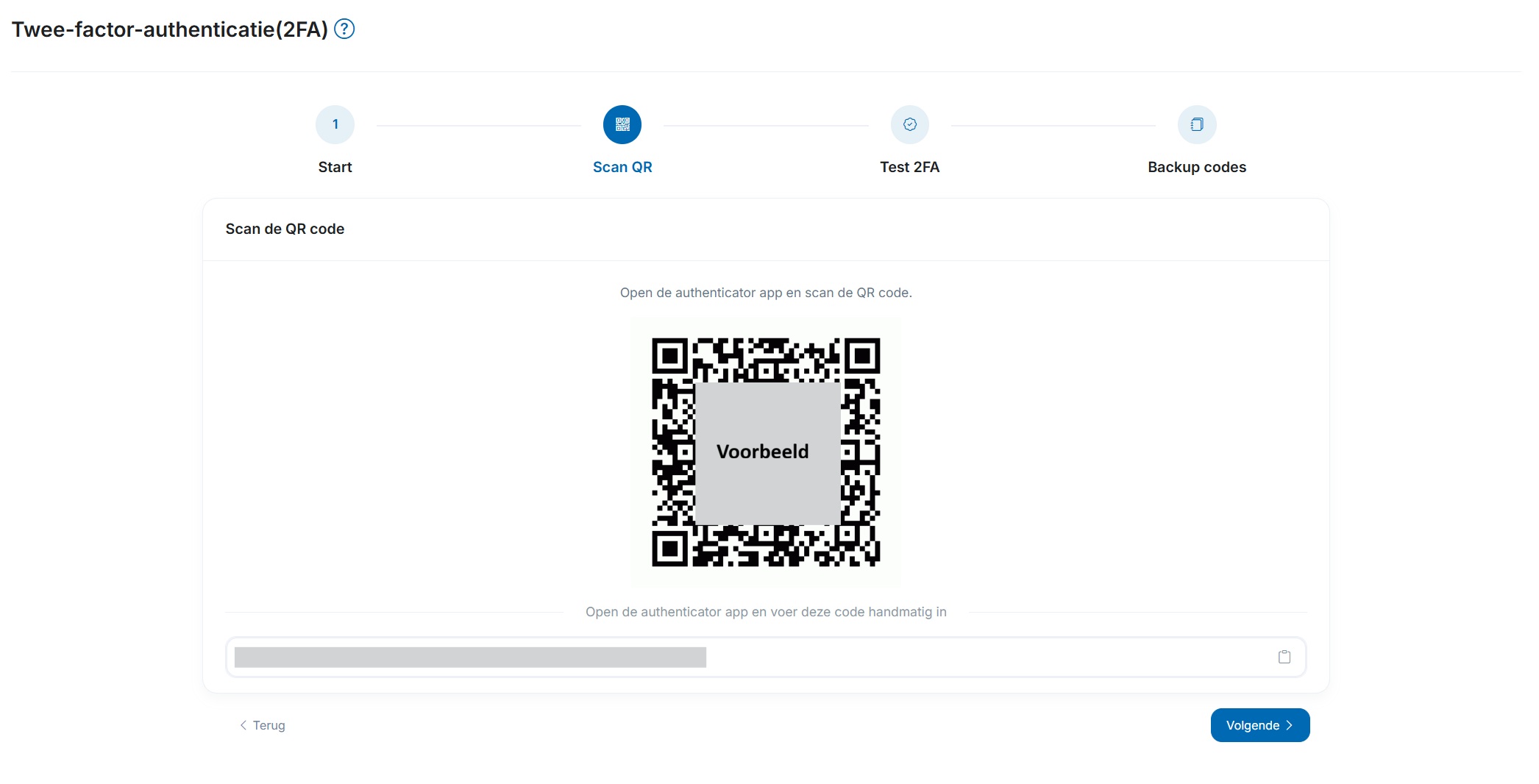 6) Scan de QR code om de 2FA te activeren en klik op 'Volgende'.
