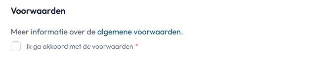 Je vinkt aan dat je het eens bent met onze voorwaarden (via de link krijg je ze in beeld).