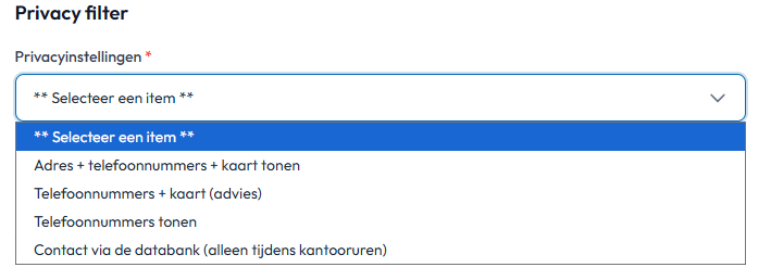 Let goed op de keuze van de privacy-instellingen. Met jouw privacy-instellingen kan je bekijken en veranderen welke gegevens zichtbaar worden als iemand het chipnummer opvraagt. Je kunt hier kiezen voor het tonen van jouw adres en telefoonnummer, alleen jouw telefoonnummer of "contact alleen via de databank". LET OP: Dat laatste betekent dat alleen medewerkers van PetBase jouw contactgegevens kunnen zien. Je kunt bij die keuze echt alléén tijdens kantoortijden gebeld worden als jouw dier gevonden is.