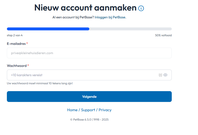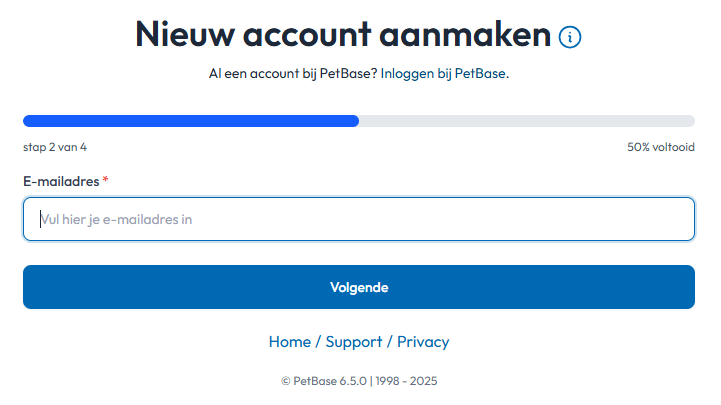 Volg de onderstaande stappen om een account bij PetBase aan te maken