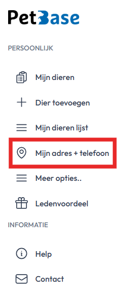 Klik links in het scherm op 'Mijn adres + telefoon'.