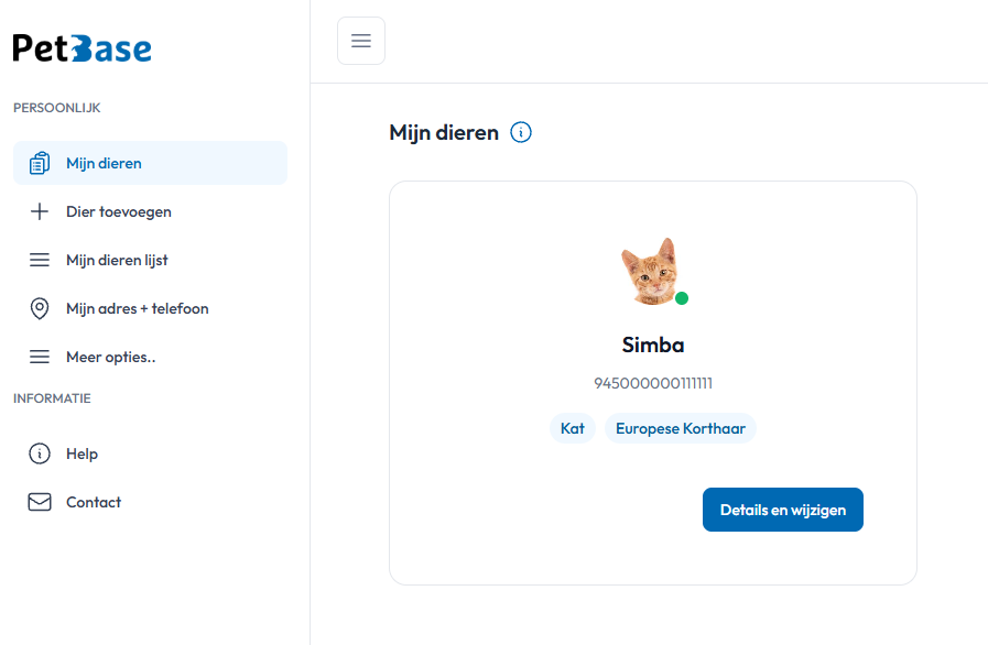 Was jouw dier al bij PetBase geregistreerd, heb je de oude inloggegevens bij de hand én ben je nog dezelfde eigenaar, dan is dit