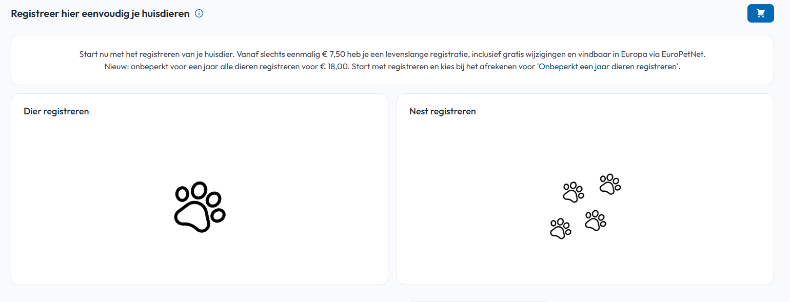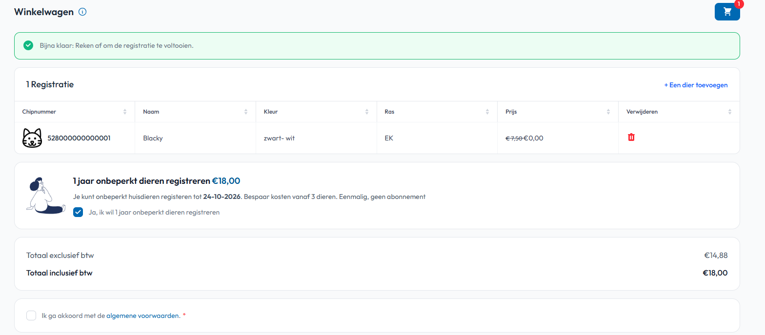 Tevens kan je kiezen voor een upgrade t.w.v. € 18,00 waarmee je onbeperkt een jaar lang dieren kunt registreren.