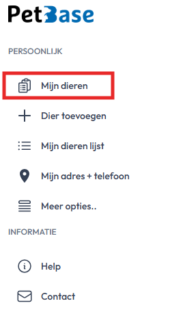 Het dier komt nu op jouw naam te staan en is vanaf dat moment opvraagbaar via 'Mijn Dieren' in het menu.