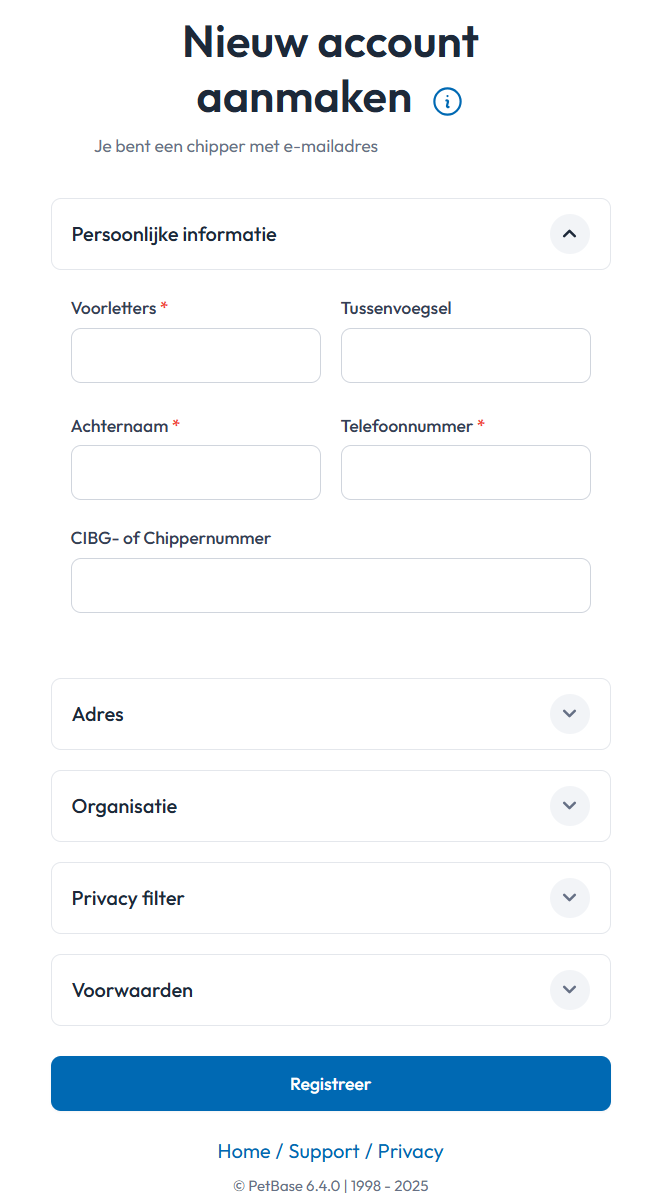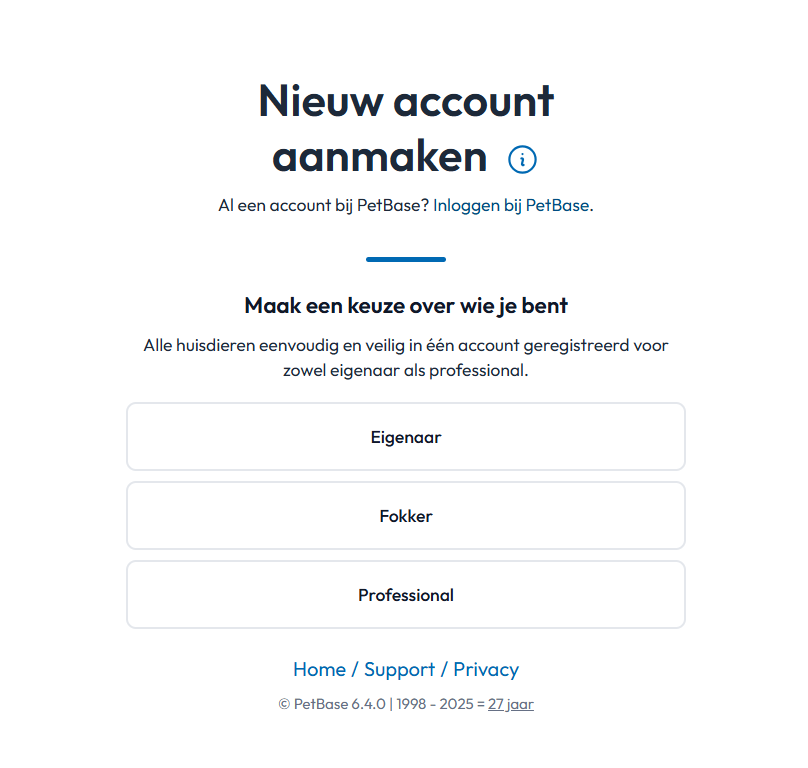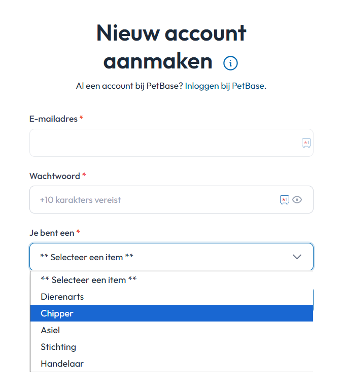 Volg de onderstaande stappen om een PetBase account aan te maken en in te richten:
