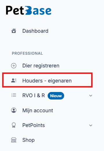 Als je ingelogd ben zie je links het menu (op een smartphone vind je het menu achter de drie streepjes). De belangrijkste pagina is het Dashboard, daar begint elke nieuwe handeling. Ook zie je daar het overzicht van jouw beschikbare PetPoints en een link naar belangrijke nieuws-items.