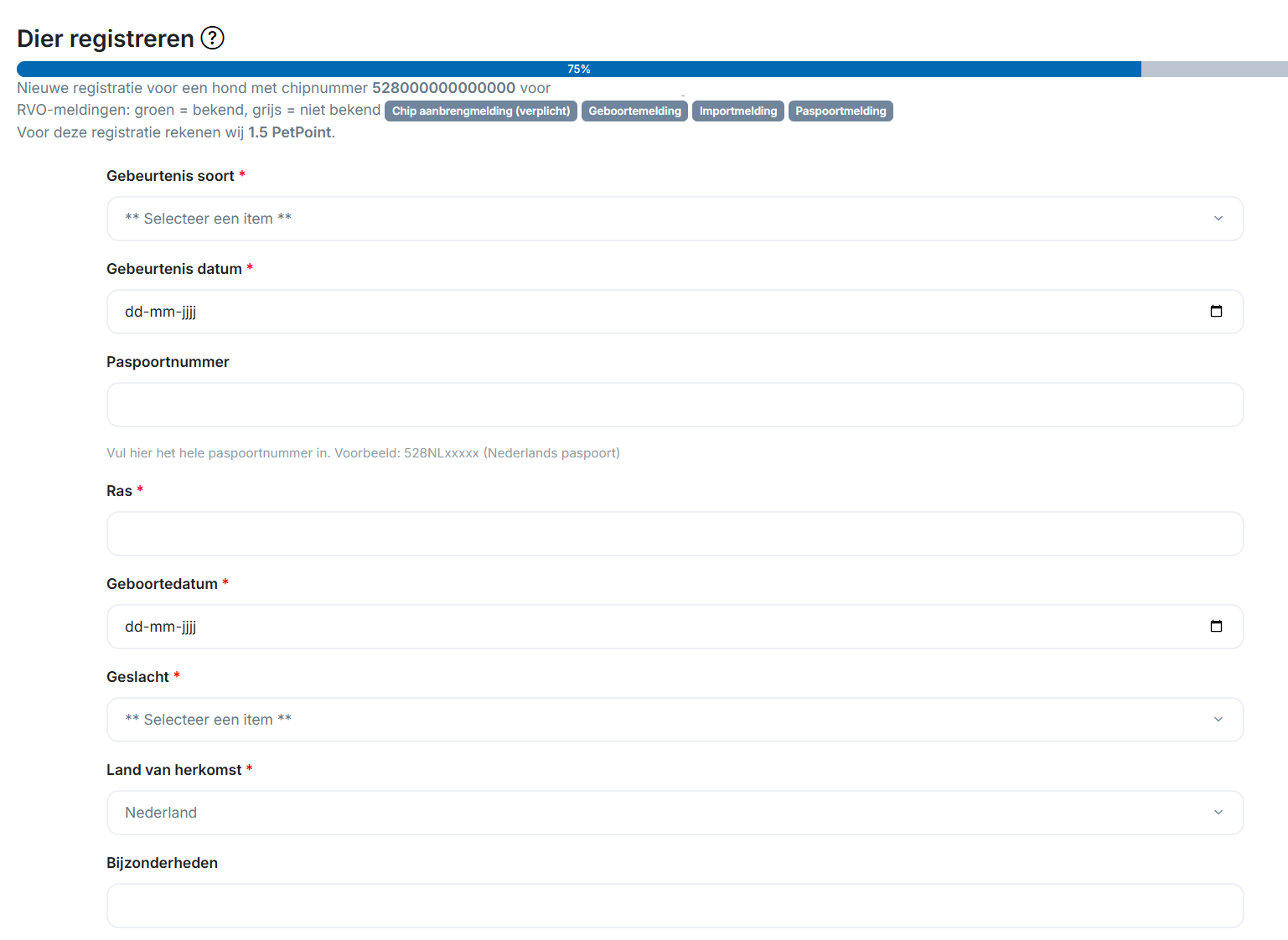 Persoonlijke informatie: Vul hier je naam, telefoonnummer en chippernummer in waarmee jij ingeschreven staat in het chipperregister.