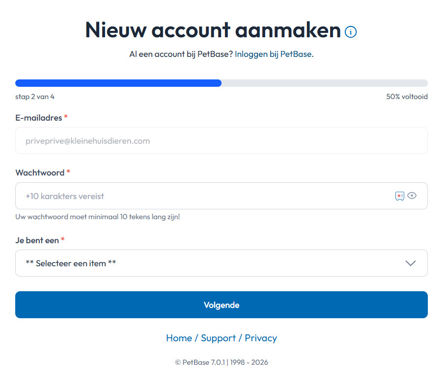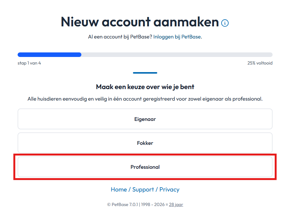 Volg de onderstaande stappen om als professional een nest huisdieren te registreren: