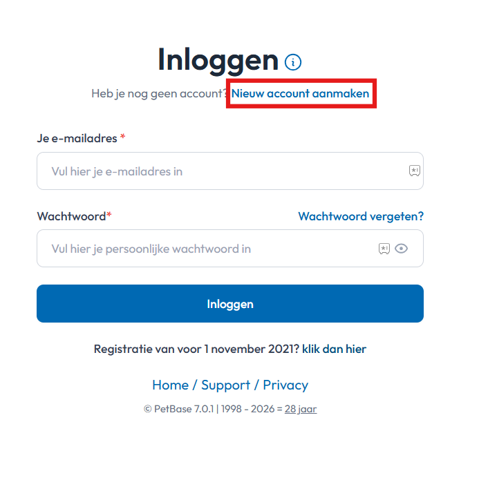 1) Log in op jouw professionele PetBase account als dierenarts of chipper